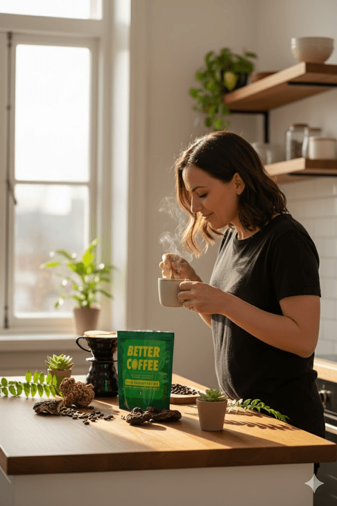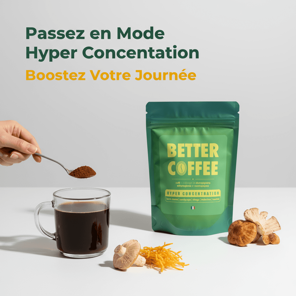 Commence ta journée avec un café qui non seulement a un goût exceptionnel, mais qui booste réellement ta performance cognitive pendant 6 à 8 heures. Better Coffee n'est pas un simple café : c'est une formule complète enrichie en adaptogènes naturels qui transforme ton énergie nerveuse en concentration laser.